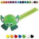 Logobug wearing card spectacles perched on a pom nose Large range of 44 pom colours and 7 feet colours to choose from Ribbon attachment printed full colour