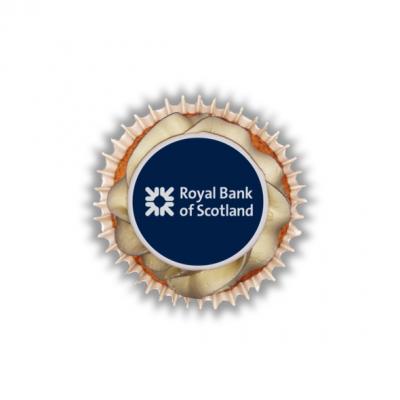4 Freshly baked cupcakes with a sponge base, flavoured frosting and a full colour edible logo image, boxed in a giftpack. 4 or 5cm branding area available.