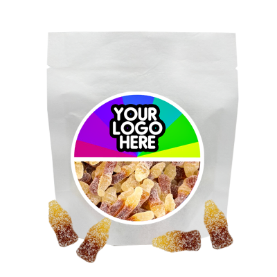 An Approximate 100g tube of Fizzy Cola Bottles branded with a full colour, brandable wrap.