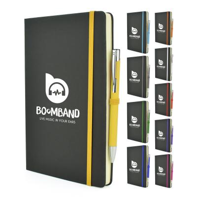 2-in-1 A5 black PU soft finish notebook with a matching Mole Mate Ball Pen. The notebook features 80 lined sheets, coloured pen loop, back pocket, coloured ribbon bookmark and coloured elasticated closure. (QS0765 & TPC982001)