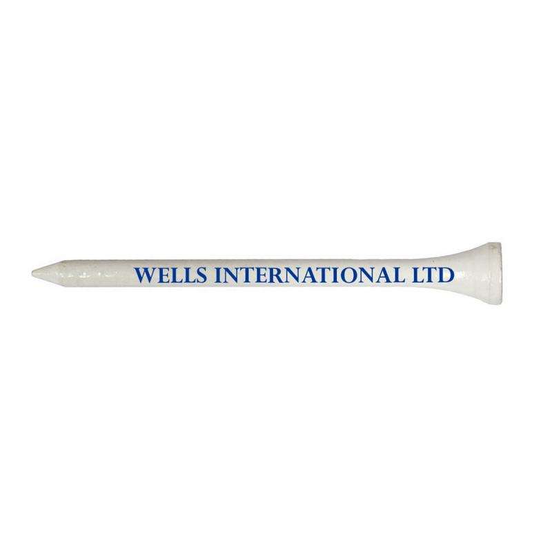 Top quality 70mm wooden golf tees printed one colour to your design. Long enough tee for all drivers, exceptional value. Priced per thousand.