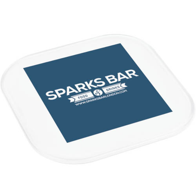 Clear plastic coaster, ideal for reverse printing techniques.